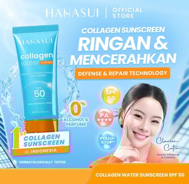 Hanasui Collagen Water Sunscreen SPF 50 - Ringan & Menenangkan Kulit No Whitecast Tidak Kusam Berminyak