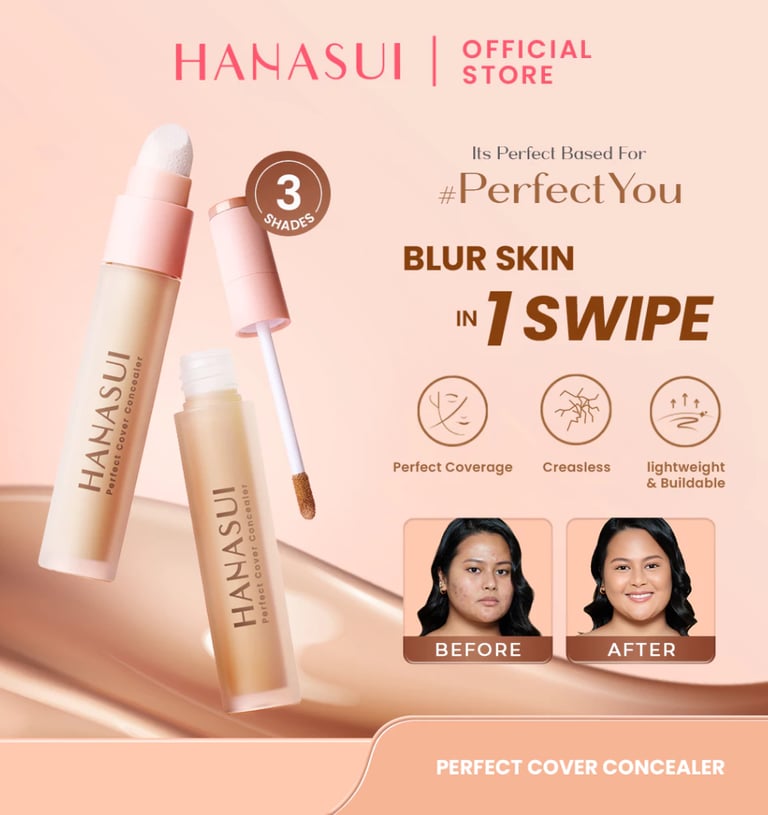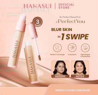 Hanasui Perfect Cover Concealer - Liquid Concealer Perfect Coverage Creaseless Blur Skin in 1 Swatch Ringan & Buildable