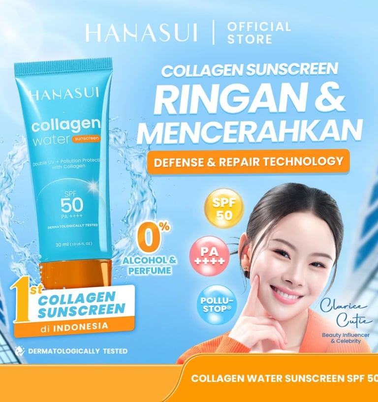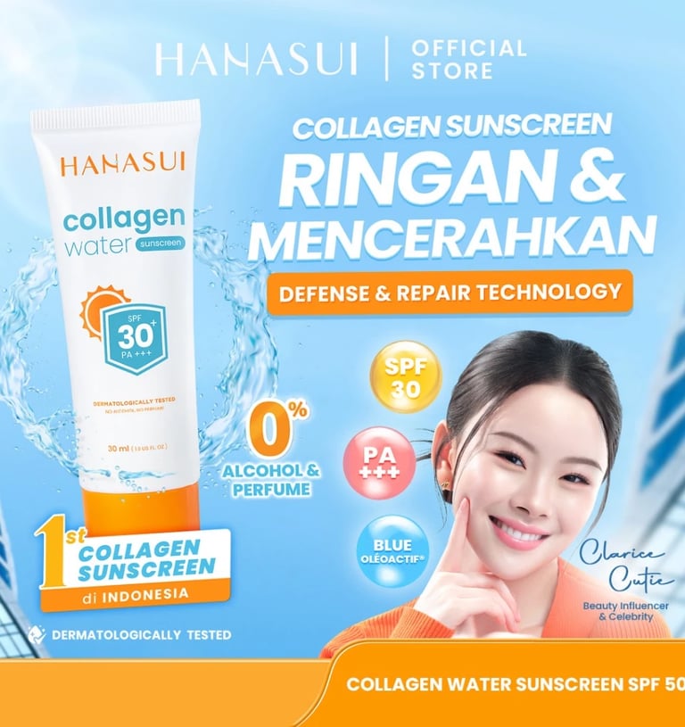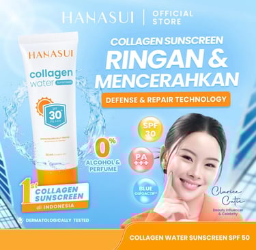 Hanasui Collagen Water Sunscreen SPF 30 - Ringan & Mencerahkan Kulit No Whitecast Tidak Kusam Berminyak