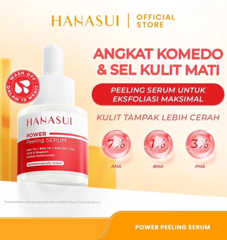 Hanasui Power Peeling Serum - Eksfoliasi Wajah Mencerahkan, Angkat Sel Kulit Mati Komedo, Kulit Tidak Iritasi Kering