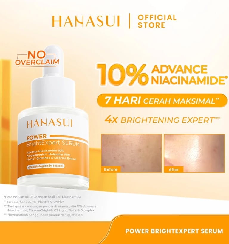 Kami percaya bahwa glowing itu hak semua orang. Makanya, Hanasui hadir dengan produk viral yang ramah di dompet dan bikin kulit kamu tampil maksimal. Karena cantik itu nggak harus mahal, yang penting niat dan niacinamide.