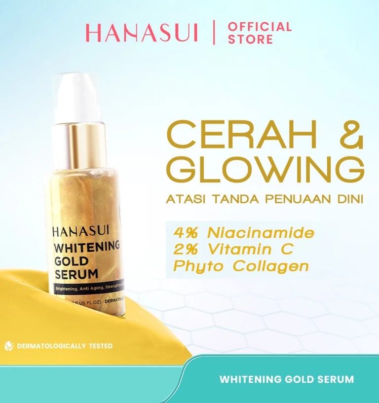 Hanasui Whitening Gold Serum - Cerah & Glowing Kurangi Bintik Hitam & Lawan Tanda Penuaan 4% Niacinamide & 2% Vitamin C